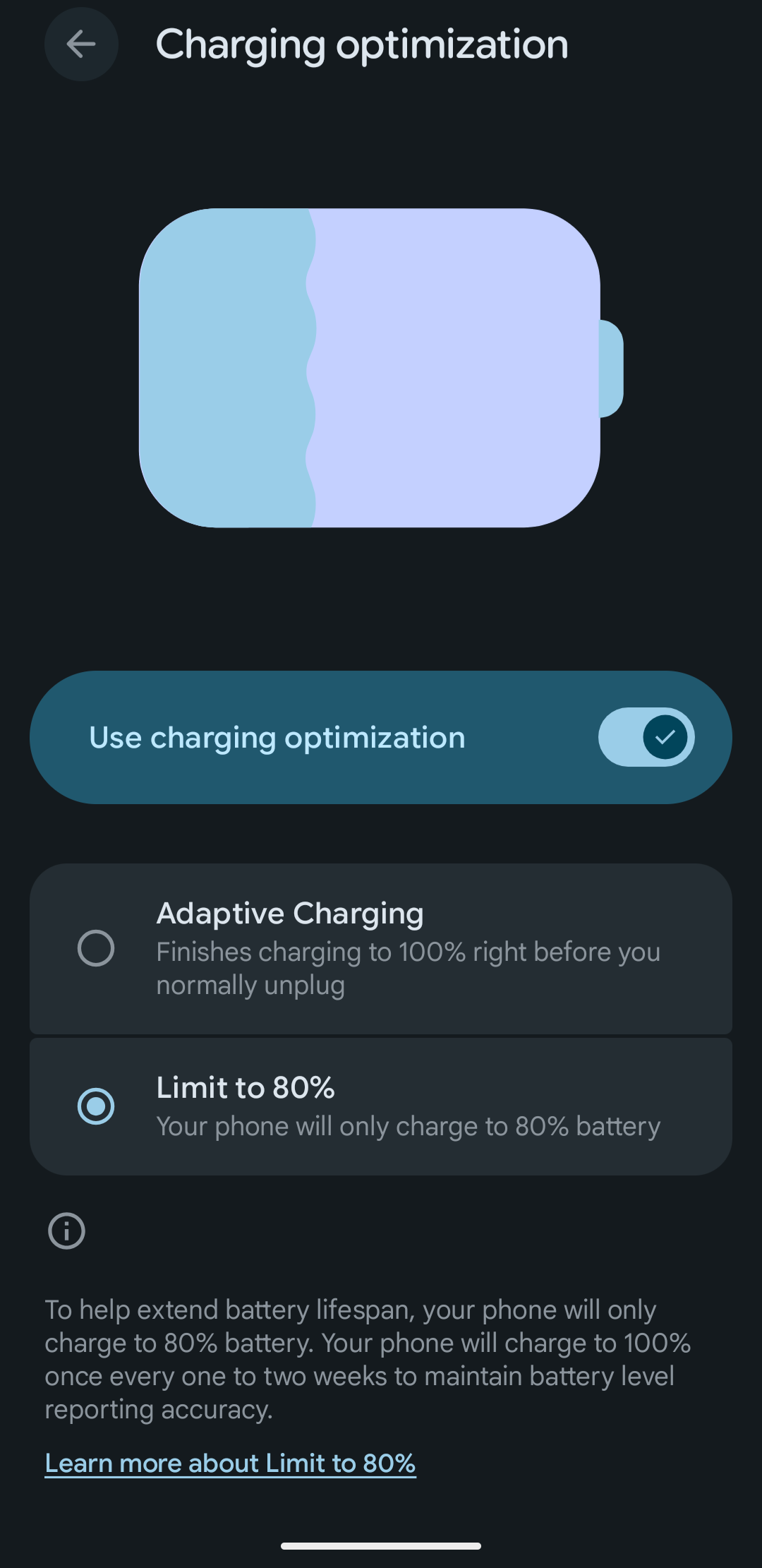 If your phone has a feature to cap maximum charge at 80-90%, use it for daily use. After two (2) years, consider a professional battery replacement instead of a new phone, it's cheaper and more sustainable. If you're storing a device, leave it with about a 50% charge in a cool, dry place.